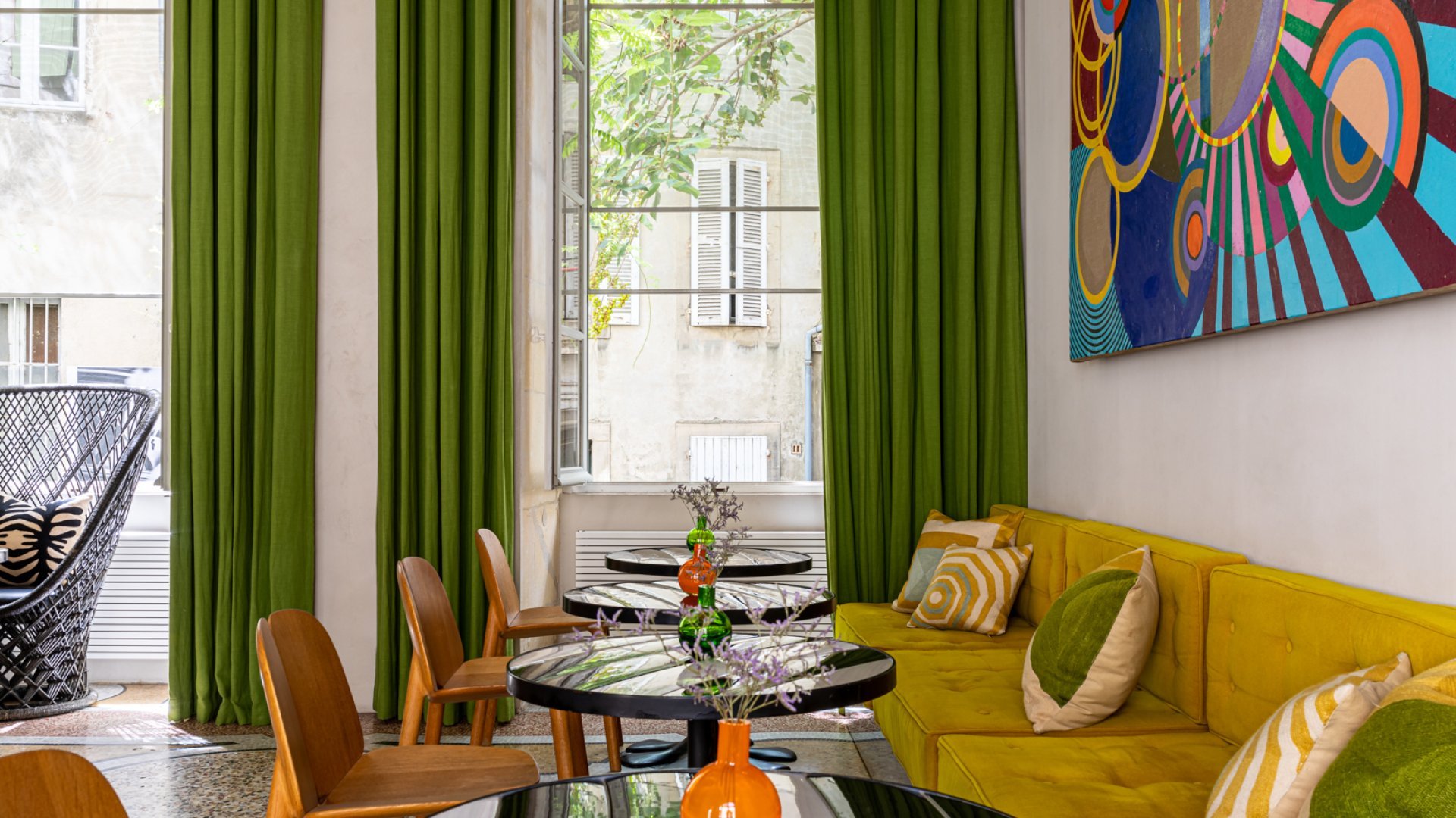 Décoré par la designer India Mahdavi, Le Cloître est une Maison où murs médiévaux et design contemporain cohabitent en harmonie.« Le souffle arlésien »